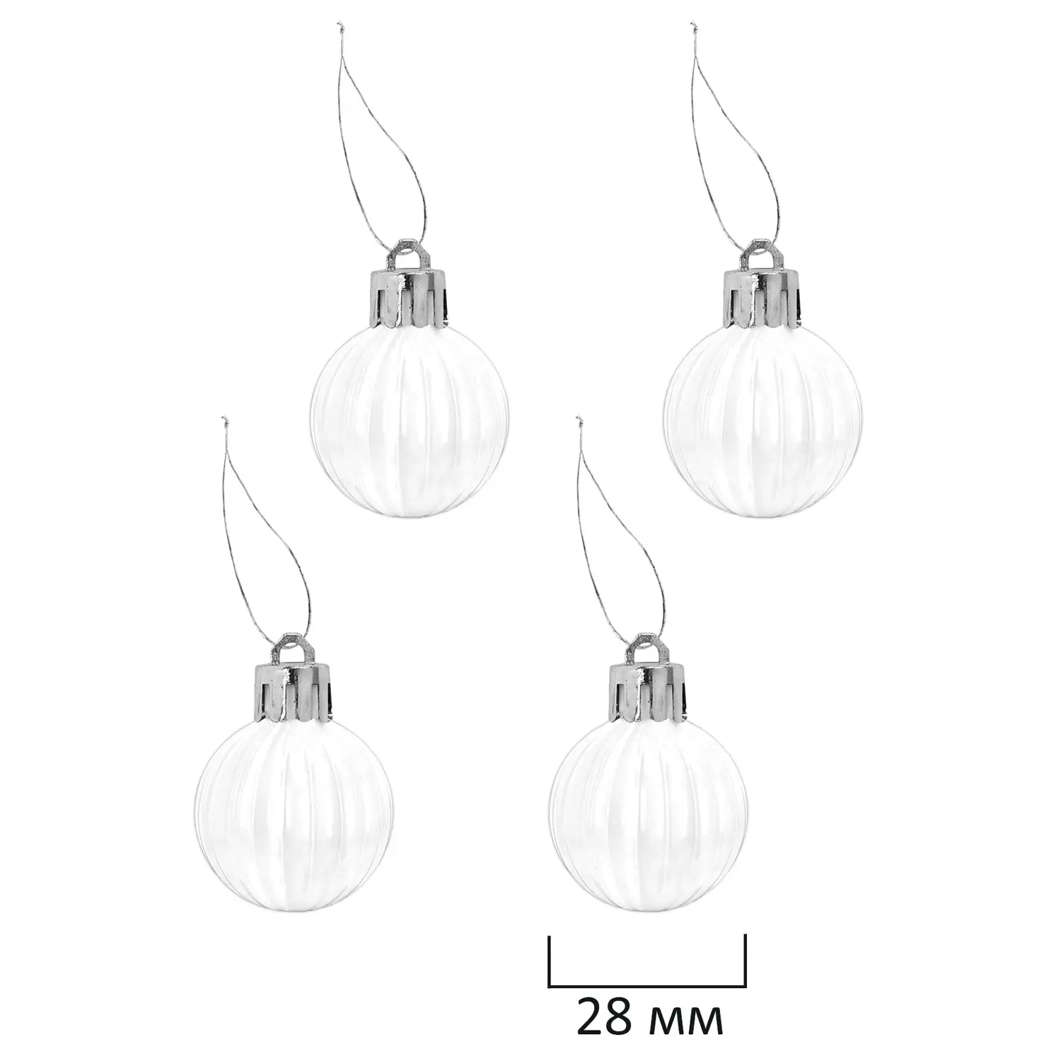 - 4 шара белого цвета с эффектом глиттер (диаметром 2,8 см),