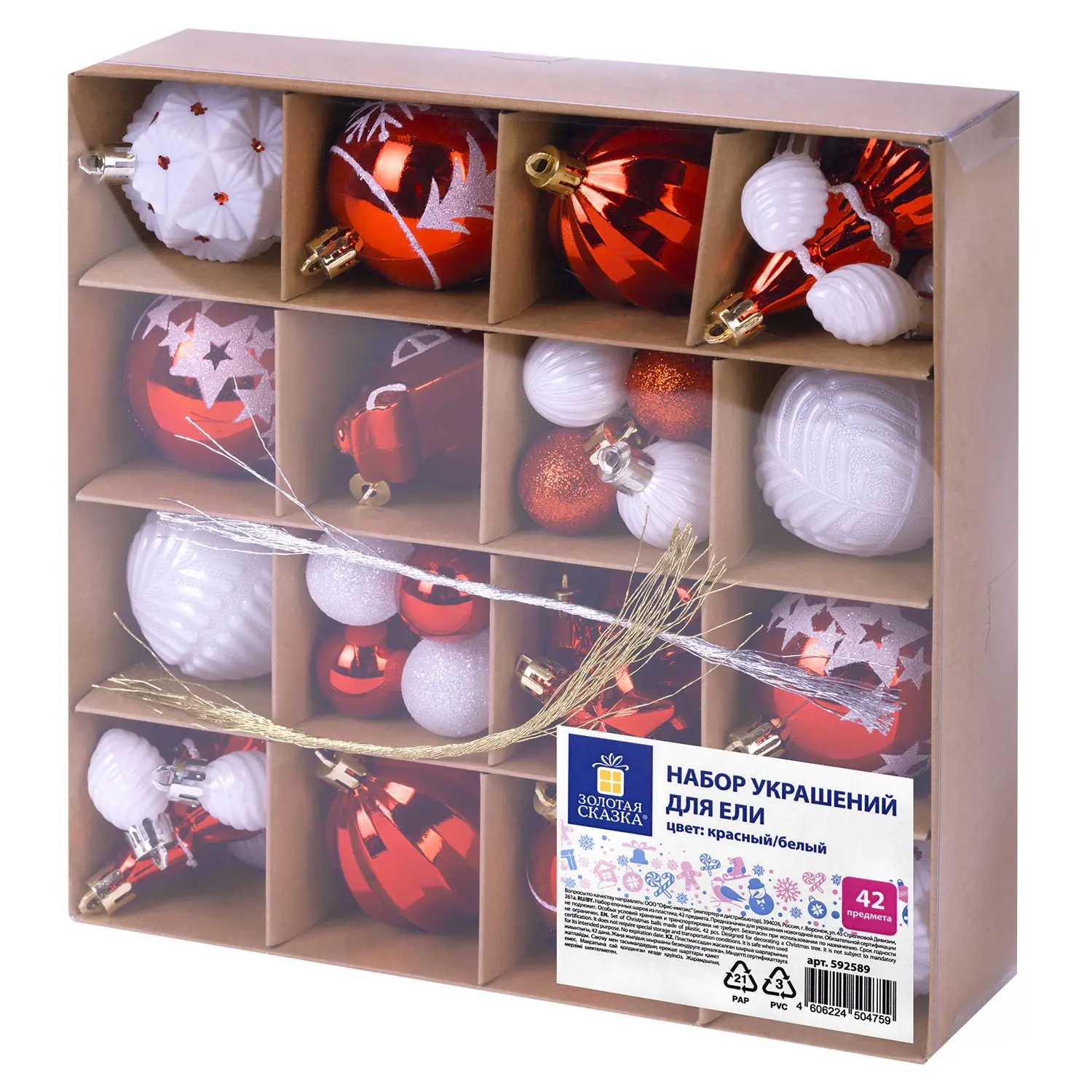- 2 шара белого цвета с матовым эффектом и красным рисунком (диаметром 5,5 см),