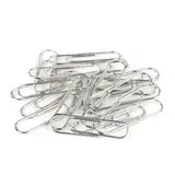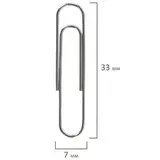 Скрепки изготовлены из стали, имеют классическую овальную форму и блестящее никелевое покрытие. Длина скрепки составляет 33 мм. Не окисляются и не повреждают документы. 100 штук в картонной коробке.