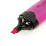 Текстовыделитель розового цвета имеет овальную форму корпуса, диаметр которого 25 мм. Скошенный наконечник имеет толщину линии письма от 1 до 5 мм, что обеспечивает удобство при работе с текстом, напечатанным мелким шрифтом, или таблицами. Благодаря особой водной основе чернил текстовыделитель не высыхает без колпачка в течение 8 часов. Текстовыделитель обладает экономным расходом чернил, при этом длина линии письма достигает 300 метров. Светоустойчивые чернила быстро впитываются, предотвращая размазывание в процессе использования, и не выцветают даже на открытом солнце. Цвет колпачка и корпуса текстовыделителя соответствует цвету чернил.