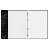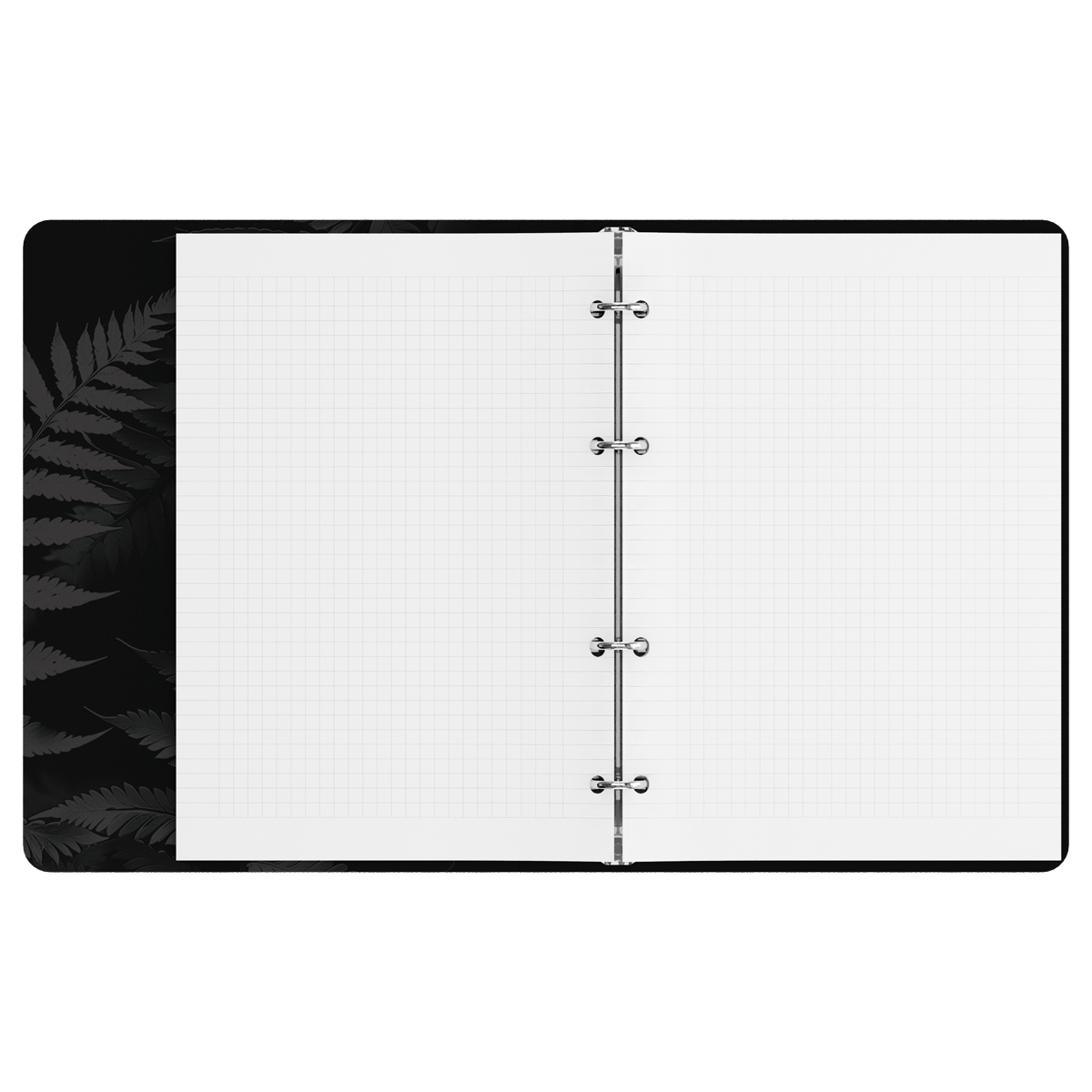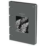 Механизм из 4 колец обеспечивает быструю смену или добавление листов при необходимости. Обложка сделана из плотного картона, который надёжно защищает внутренний блок. Отделка обложки — матовая ламинация, тиснение фольгой.
