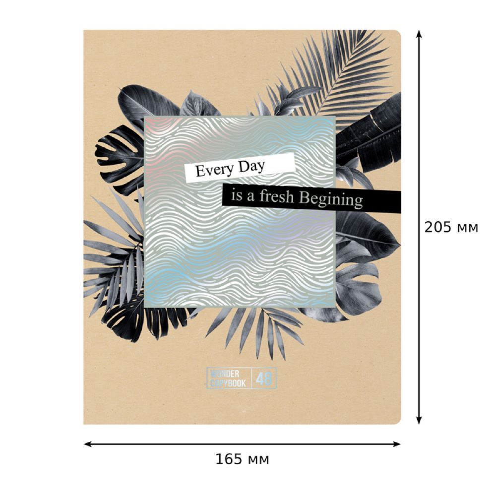 Общая тетрадь BG Wonder формата А5 (165*205 мм) на скрепке состоит из 48 листов. Внутренний блок – это офсетная бумага плотностью 60 г/м², белизна – 100%, линовка – клетка с полями. Обложка выполнена из мелованного картона с тиснением голографической фольгой. Тетради отлично подходят для выполнения домашних и контрольных работ.