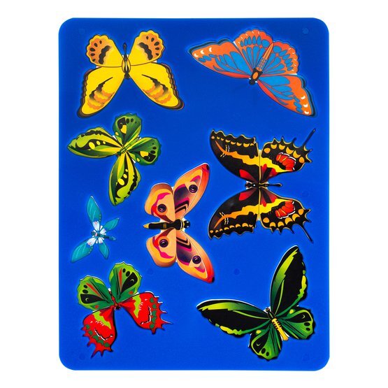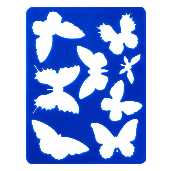 Трафарет "Бабочка", 15.5х20 смТрафареты созданы для детского творчества. Выполнены трафареты из плотного пластика. Нужно просто приложить трафарет на лист бумаги, обвести по контуру, а затем раскрасить получившееся изображение. Ребенок может скопировать образец для раскрашивания на подложке трафарета или придумать свой вариант. Клейкая основа: Нет. Количество изображений: 8.