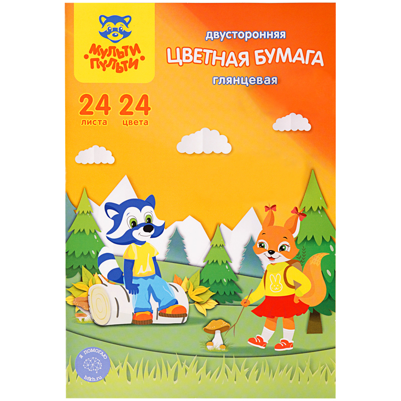 Набор двусторонней цветной бумаги «Мульти-Пульти» серии «Приключения Енота» идеально подойдет для творчества. Бумага имеет размер 200*280 мм. Плотность бумаги – 65 г/м2. В наборе представлено 24 ярких цвета глянцевая бумаги на 24 листах. Бумага окрашена с двух сторон и упакована в папку из высококачественного целлюлозного картона. Товар сертифицирован для детей от 3 лет.